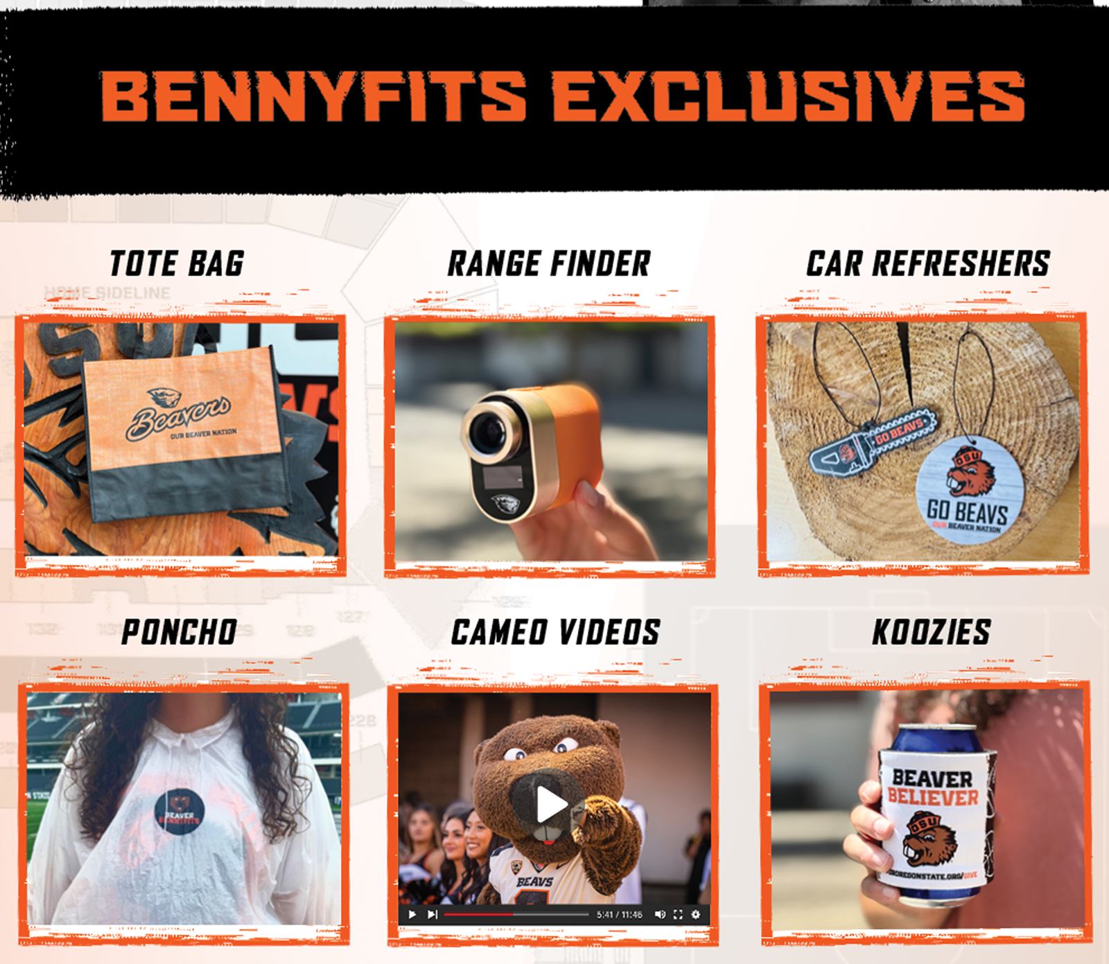 Bennyfits is our way of saying thank you for showing up for Oregon State student-athletes. Your generosity helps fuel scholarships, direct student-athlete benefits, wellness and nutrition programs, facilities, and unforgettable experiences that shape their journey at OSU and beyond.